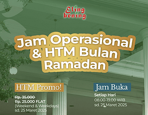 Nikmati keindahan Eling Bening dengan harga spesial! Mulai dari weekdays hingga weekend, tiket masuk hanya Rp25.000 saja! Promo ini berlaku hingga 25 Maret 2025. Jadi, tidak ada alasan untuk tidak mengunjungi Eling Bening di bulan penuh berkah ini.